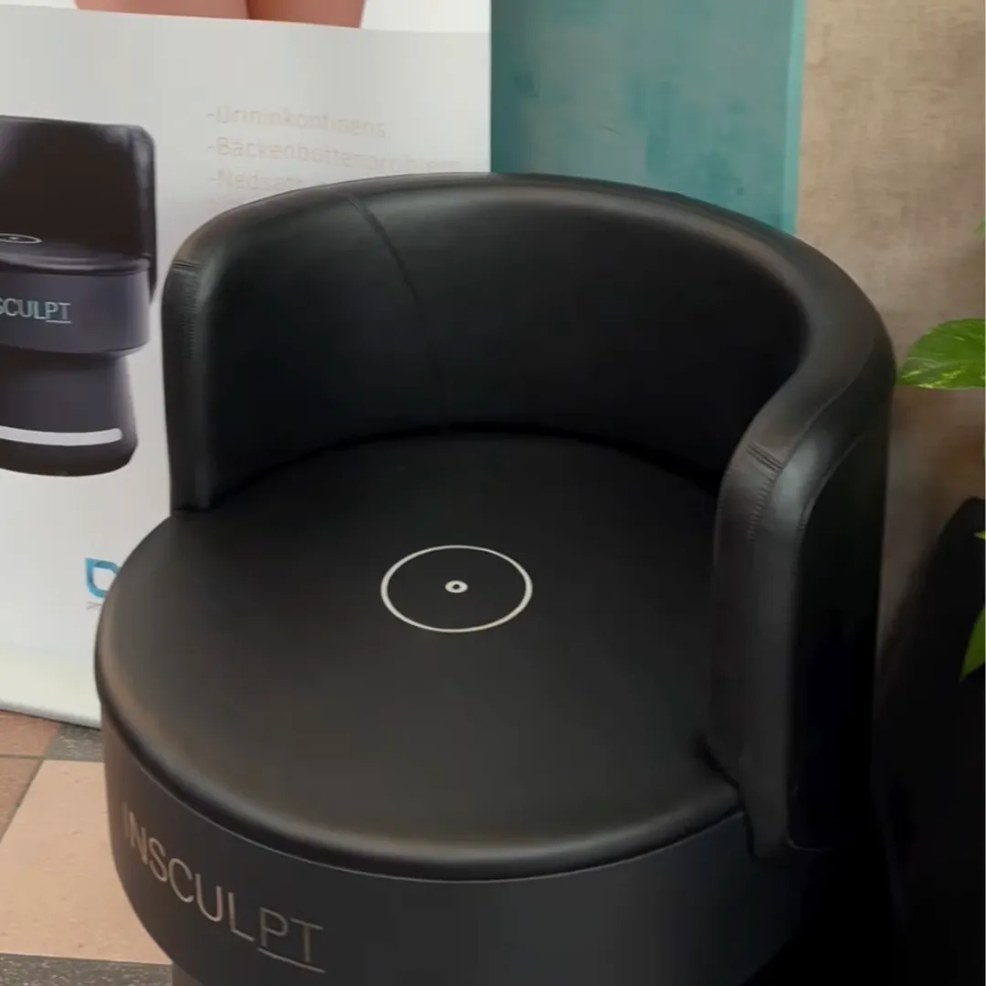 Inte alls. Du sitter bekvämt i stolen, fullt påklädd, och behandlingen känns som mjuka, rytmiska sammandragningar i bäckenbotten. Många beskriver det som märkligt i början – men absolut inte smärtsamt.
